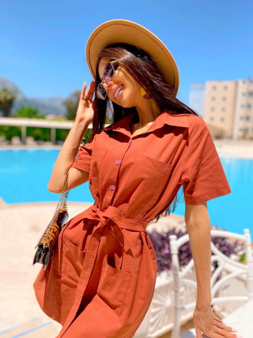 Лляне літнє плаття сорочка короткий з накладними кишенями і коротким рукавом (р. 42-44) 8032574