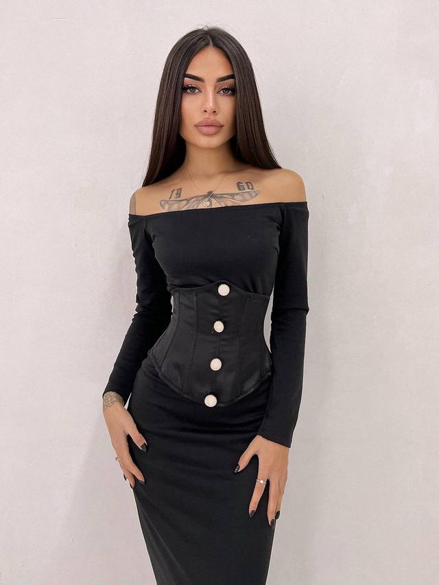 Міді сукня з атласним корсетом і відкритими плечима облягаюча (р. 42, 44) 66035022Е