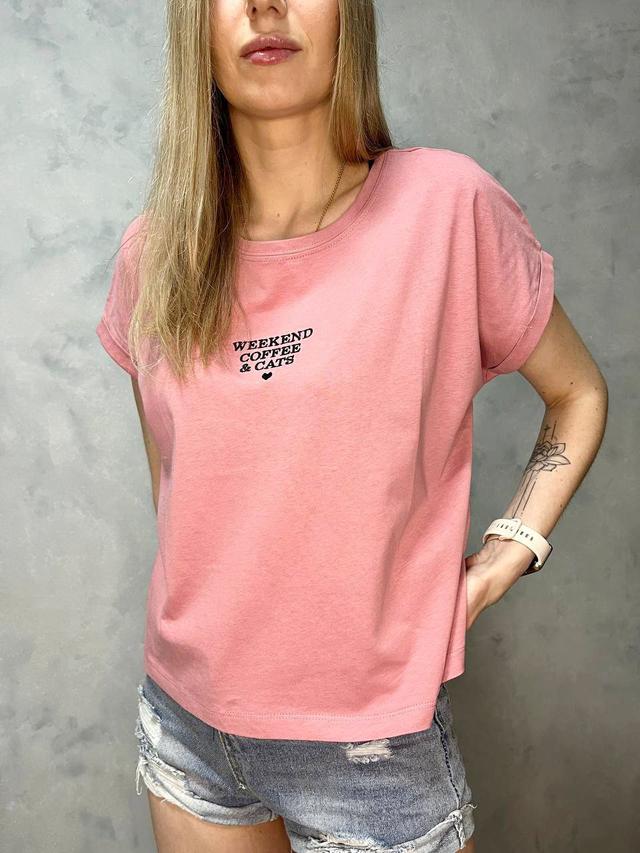 Жіноча вільна футболка з котону з написом на грудях (р. 42-46) 1171061r