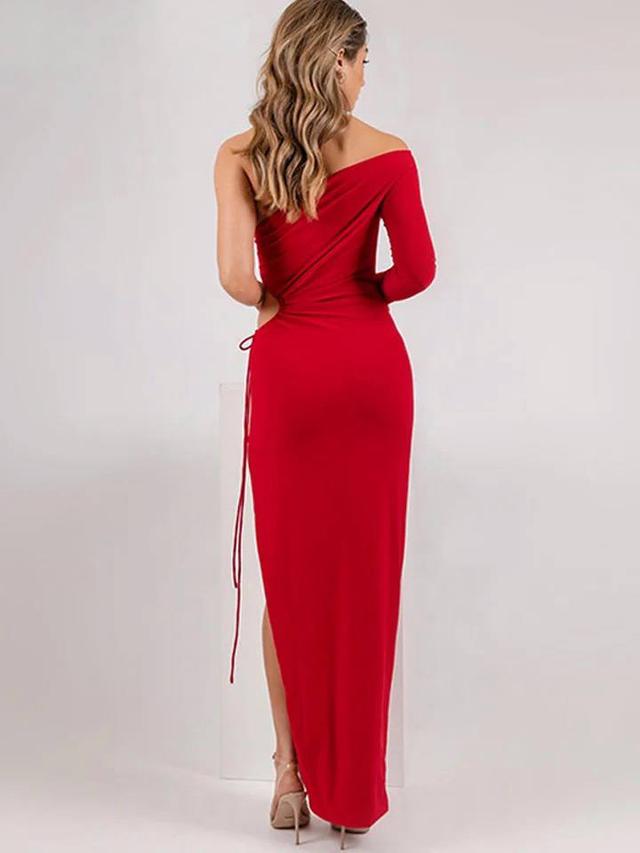Вечірнє плаття з відкритими плечима й одним рукавом зі складками та вирізом на талії (р. 42-44) 10035212