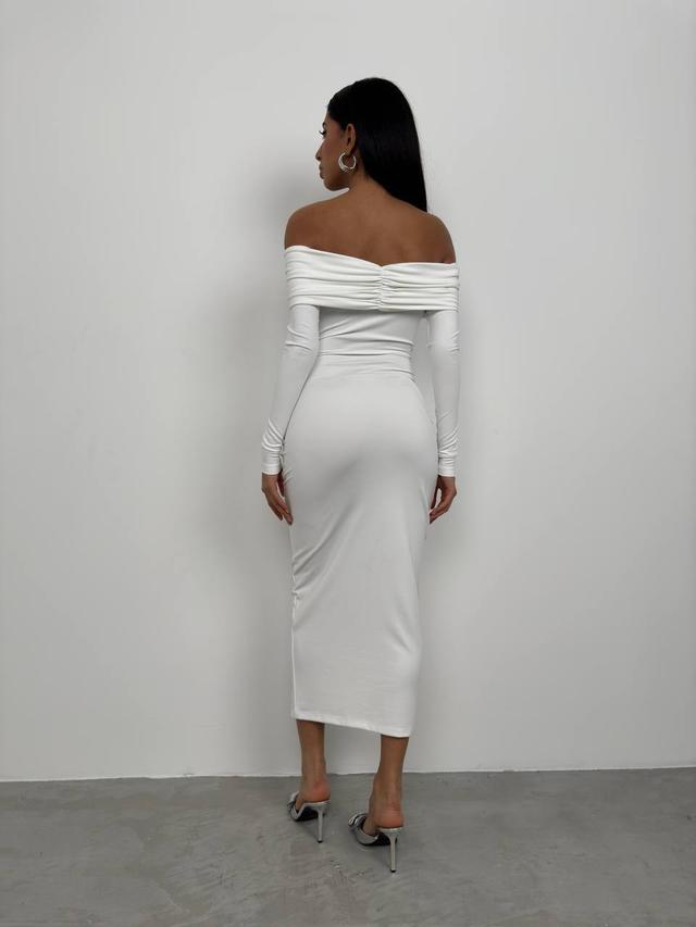 Силуетне мідіплаття з відкритими плечима та драпіруванням (р.42-48)