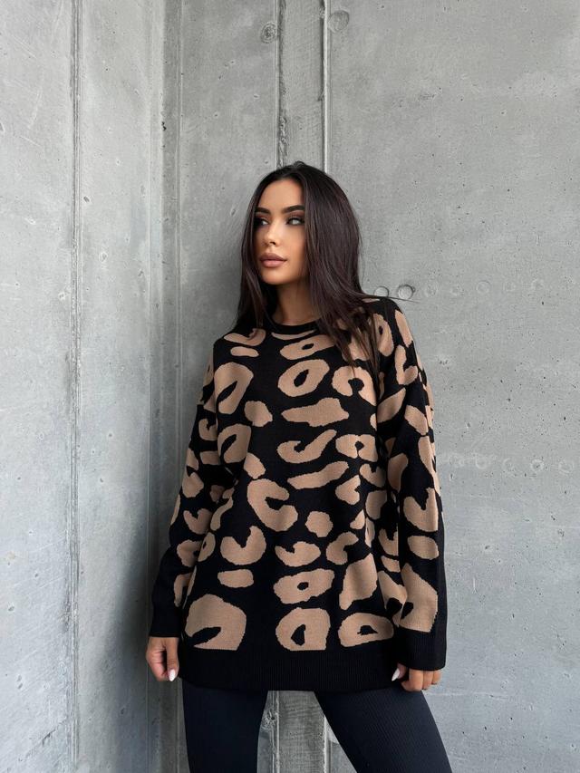 Жіночий светр туніка оверсайз у леопардовий принт 55043368