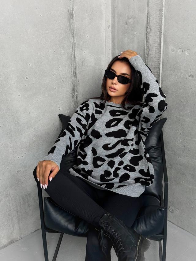 Жіночий светр туніка оверсайз у леопардовий принт 55sv3368