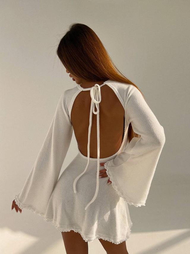 Коротке плаття в рубчик приталене з розкльошеними рукавами та вирізом на спині (р.S, M) 66py5845Е
