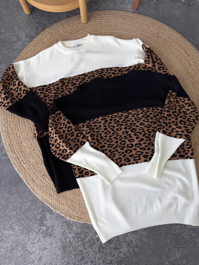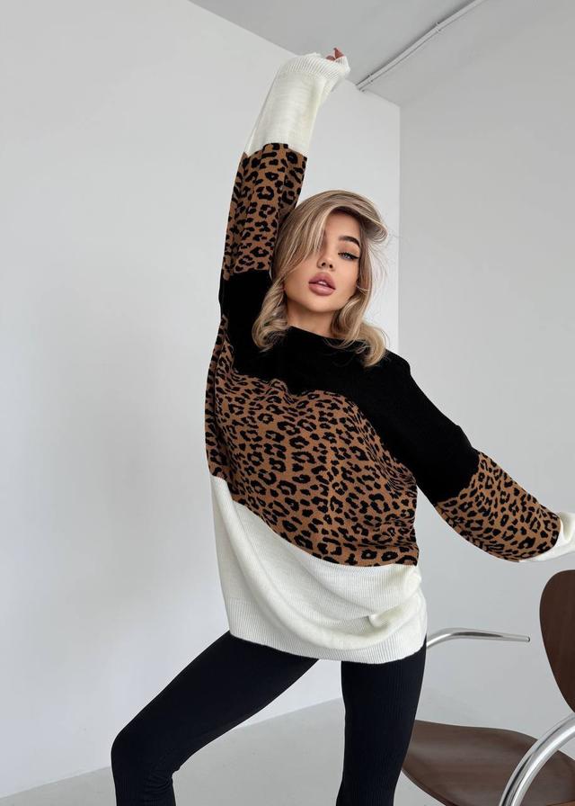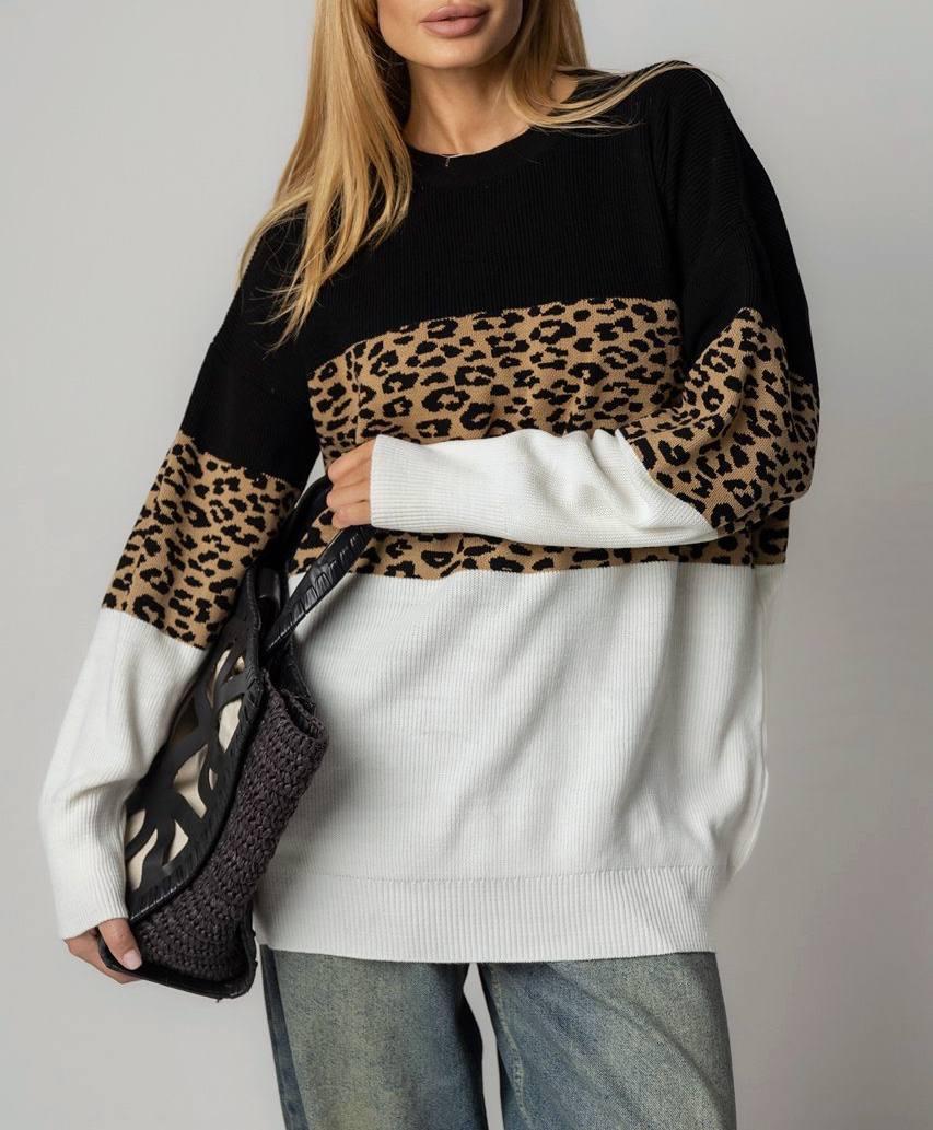 Триколірний светр туніка оверсайз у леопардовий принт 55sv3408