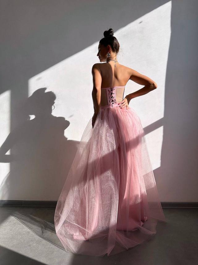 Максі плаття двійка з фатиновою пишною спідницею і корсетом бюстьє зі стразами (р. S, M)