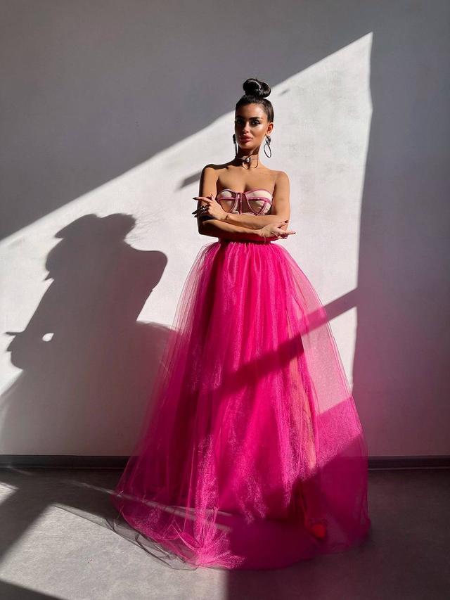 Максі плаття двійка з фатиновою пишною спідницею і корсетом бюстьє зі стразами (р. S, M) 66py5939Е