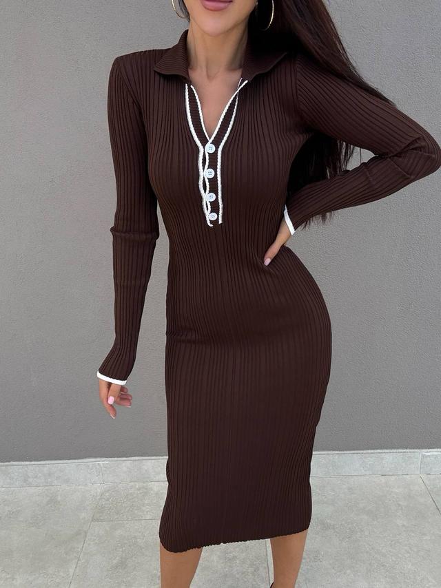 Силуетне міді плаття з коміром поло та контрастною смужкою (р. 40-44) 9py6142