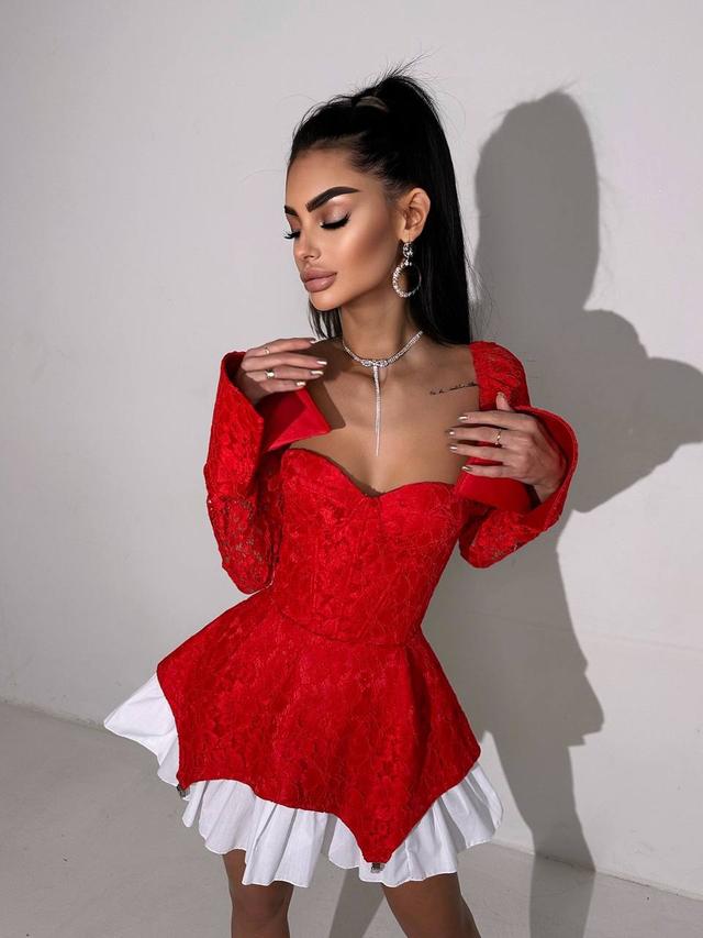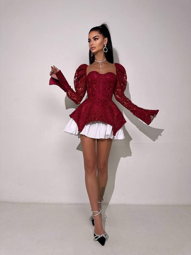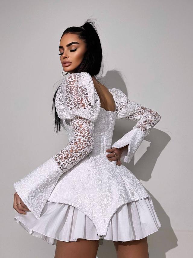Мереживне плаття бюстьє з білим підспідничником і рукавами ліхтариками (р. S, M)