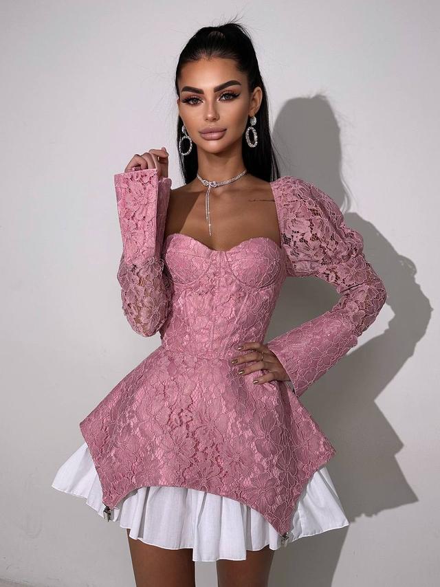 Мереживне плаття бюстьє з білим підспідничником і рукавами ліхтариками (р. S, M) 66py6145Е